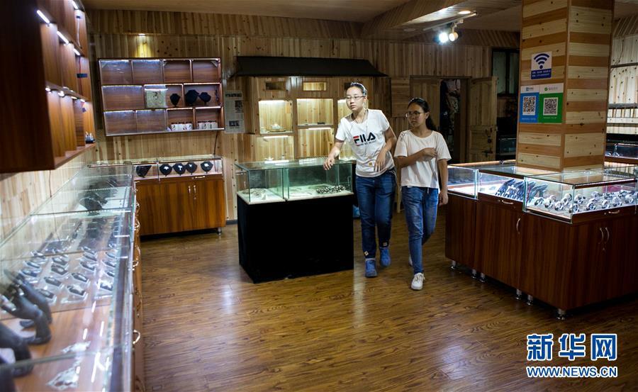 8月3日,前來體驗(yàn)銀飾制作的青少年參觀龍?zhí)柕你y飾陳列展臺。