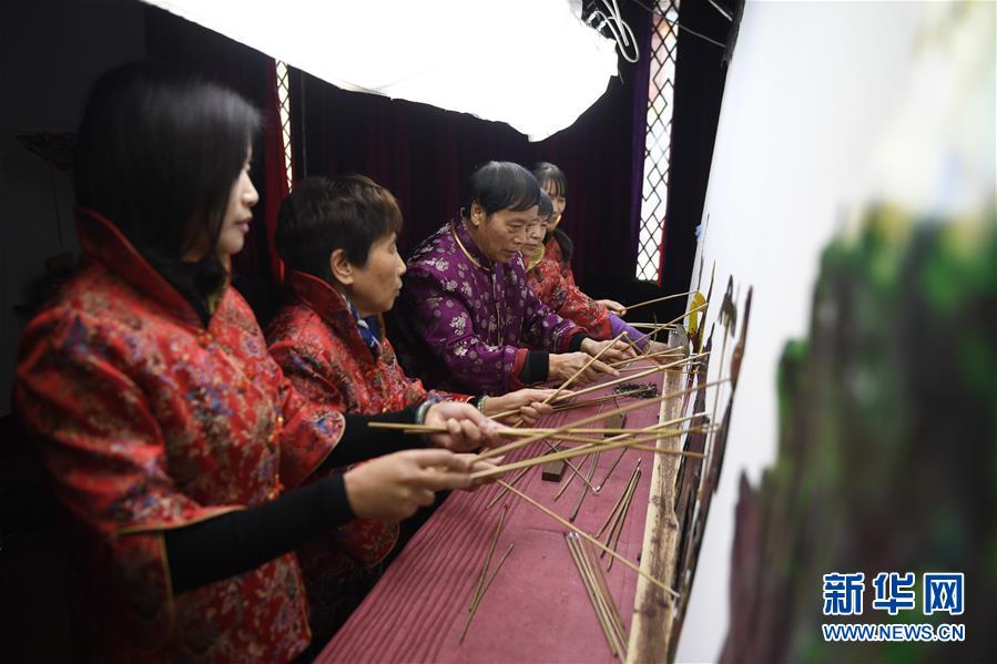制作一個(gè)花束,最快也要15分鐘,復(fù)雜的需要半個(gè)小時(shí)甚至更長時(shí)間。圖為王黎媛和同事在制作花束。新華網(wǎng) 周亞平/攝念新洪/文