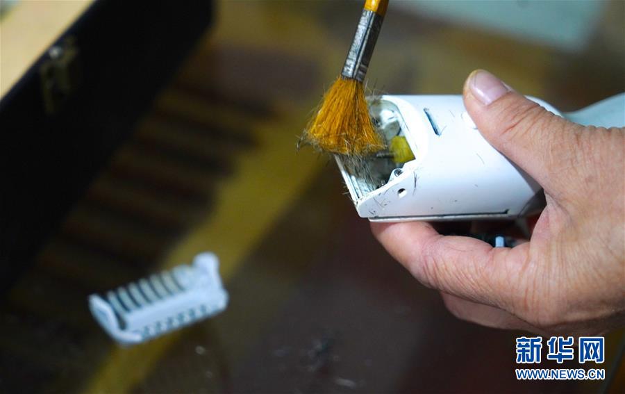 11月13日,鄒勤敏在家中清理理發(fā)工具。