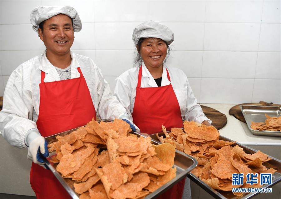 今年49歲的汪明祥和47歲的姚新花是安徽省涇縣黃村鎮(zhèn)沙元村的一對農(nóng)民夫妻。2013年,汪明祥突發(fā)疾病花光了家里的積蓄,并喪失了一定的勞動能力。2014年,汪明祥一家被確定為建檔立卡貧困戶。為了靠自己的雙手實現(xiàn)脫貧,汪明祥和妻子姚新花在家里開始生產(chǎn)手工鍋巴,雖然收入不高,但是經(jīng)濟(jì)狀況慢慢好轉(zhuǎn)起來,于2016年順利實現(xiàn)脫貧。脫貧后的夫妻倆開始琢磨如何進(jìn)一步發(fā)展自家的手工鍋巴生意。今年,汪明祥和妻子姚新花利用當(dāng)?shù)胤鲐毿☆~貸款和自籌資金創(chuàng)辦的強(qiáng)源鍋巴廠投產(chǎn)。由于口味地道,價格不高,汪明祥家的鍋巴受到市場的歡迎,平均每天生產(chǎn)鍋巴50余斤,日均銷售額400多元?!安坏炔豢?,甩窮帽,我們夫妻倆靠手藝脫了貧,也有信心實現(xiàn)致富?!蓖裘飨檎f。