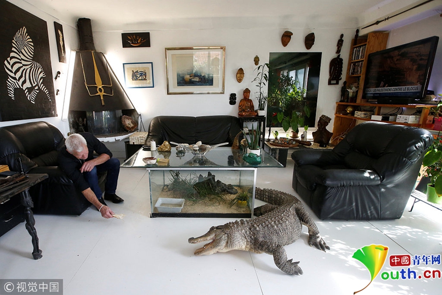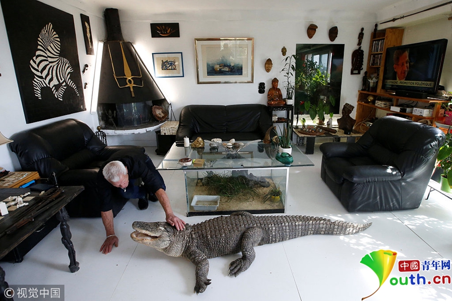 Philippe Gillet將短吻鱷從小養(yǎng)大,在家里允許它們肆意走動(dòng),就如同我們的家養(yǎng)貓貓狗狗一樣。