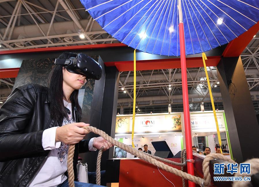 11月23日,參觀者在使用VR眼鏡體驗虛擬現(xiàn)實考古場景。新華社記者李賀攝