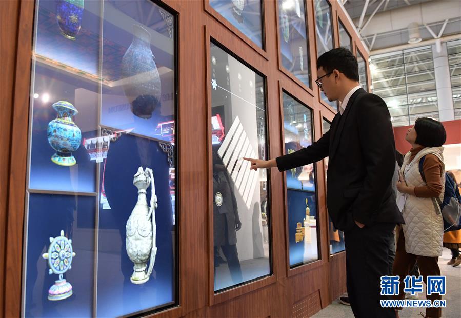 11月23日,幾位觀眾正在操作3D虛擬文物的互動展示。新華社記者李賀攝