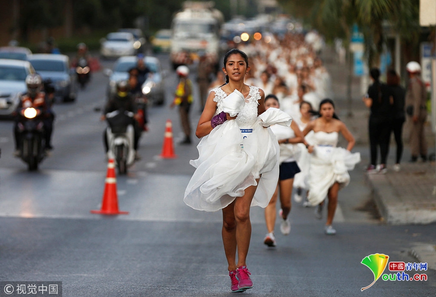 泰國新娘賽跑爭(zhēng)免費(fèi)婚禮 新娘街頭提裙狂奔