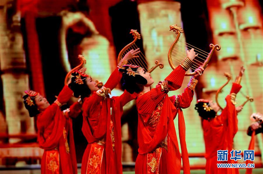 來(lái)自陜西的演員在西安大唐西市表演舞蹈《大唐禮賓》(2016年5月13日攝)。 新華社記者 劉瀟 攝