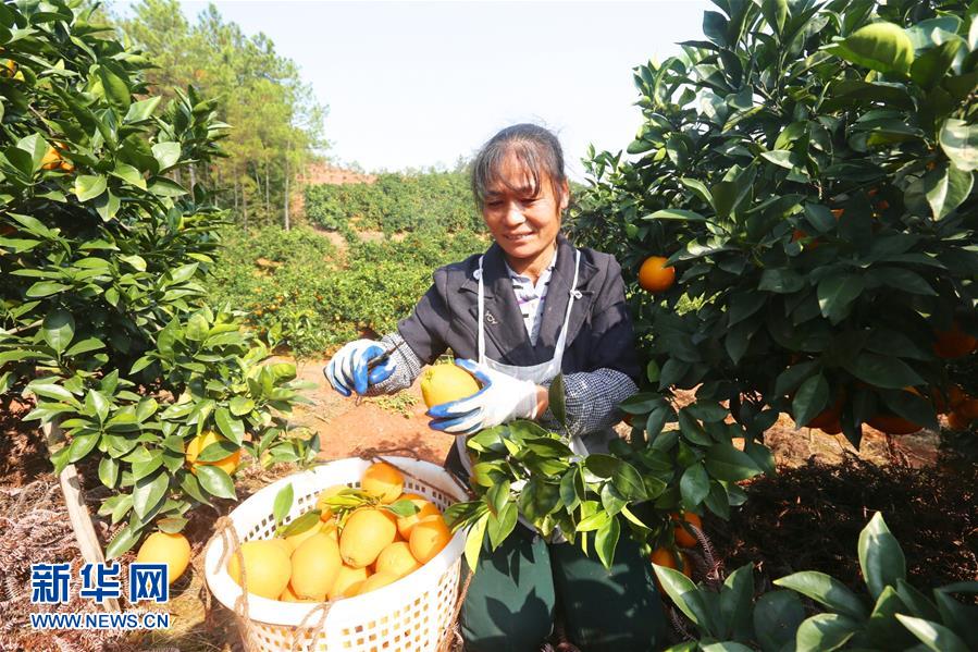 近日,江西省贛州市于都縣近15萬畝臍橙進入豐收采摘期,當?shù)剞r戶抓住晴好天氣采摘,果園呈現(xiàn)一派繁忙景象。 新華社記者 胡晨歡攝
