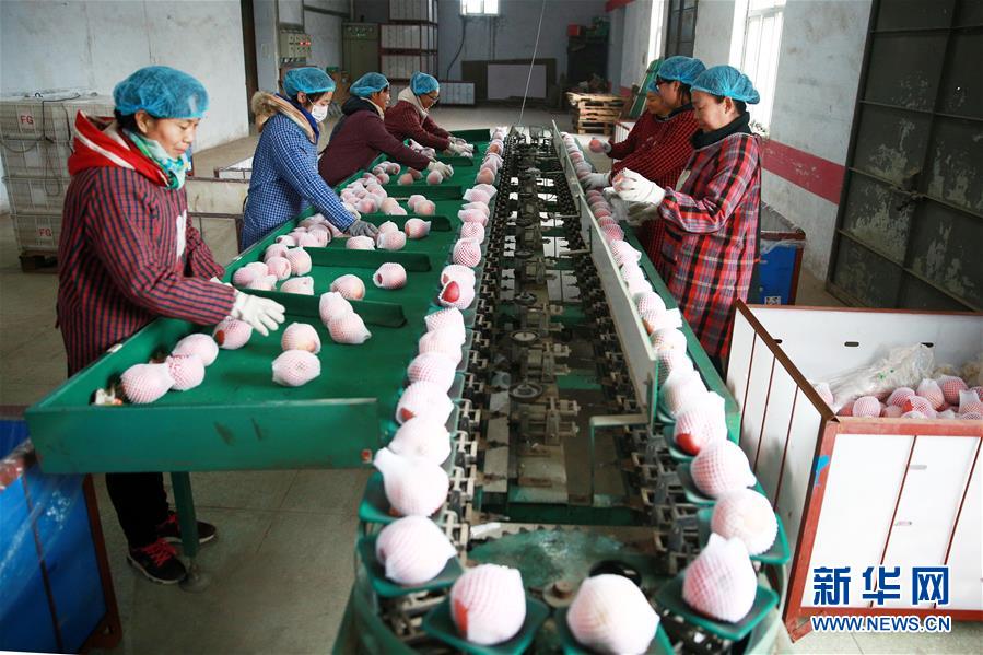 11月26日,河北省內(nèi)丘縣一扶貧龍頭企業(yè)的員工在分揀蘋果。 近年來,河北省內(nèi)丘縣不斷推進產(chǎn)業(yè)扶貧,探索“龍頭企業(yè)+貧困戶”利益鏈接機制,通過扶貧資金入股、進廠打工等方式,提高貧困戶的產(chǎn)業(yè)參與度和受益度,帶動1300余戶貧困戶實現(xiàn)增收。 新華社記者 牟宇 攝