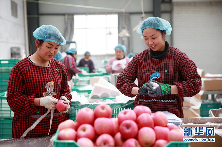 11月26日,河北省內(nèi)丘縣一扶貧龍頭企業(yè)的員工在將蘋(píng)果裝箱。 近年來(lái),河北省內(nèi)丘縣不斷推進(jìn)產(chǎn)業(yè)扶貧,探索“龍頭企業(yè)+貧困戶(hù)”利益鏈接機(jī)制,通過(guò)扶貧資金入股、進(jìn)廠打工等方式,提高貧困戶(hù)的產(chǎn)業(yè)參與度和受益度,帶動(dòng)1300余戶(hù)貧困戶(hù)實(shí)現(xiàn)增收。 新華社記者 牟宇 攝