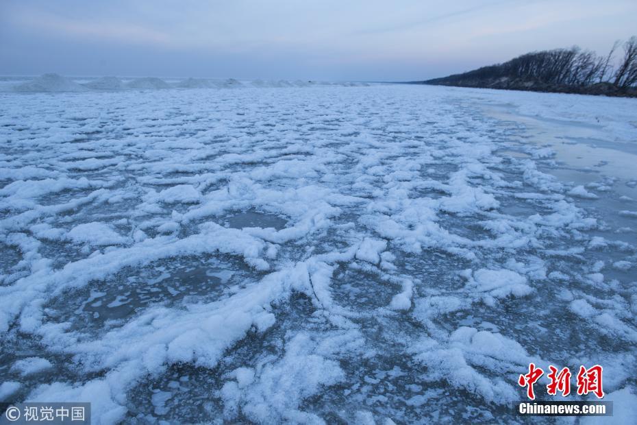 11月24日下午,攝影師在進(jìn)入冬季黑龍江東南部中俄界湖興凱湖看到,浩瀚千里的湖面不再波濤洶涌,小興凱湖蔚藍(lán)猶如平鏡,大興凱湖銀白無限。走到冰封的湖面近處觀看,封凍的大湖湖面猶如浪花被凝固,千姿百態(tài)。據(jù)岸邊漁民介紹,今年大湖屬于“武封”,是由于氣溫突然下降造成的,這也是少有的現(xiàn)象,和往年的“文封”形成的大冰塊區(qū)別很大。孫長山 攝 圖片來源:視覺中國