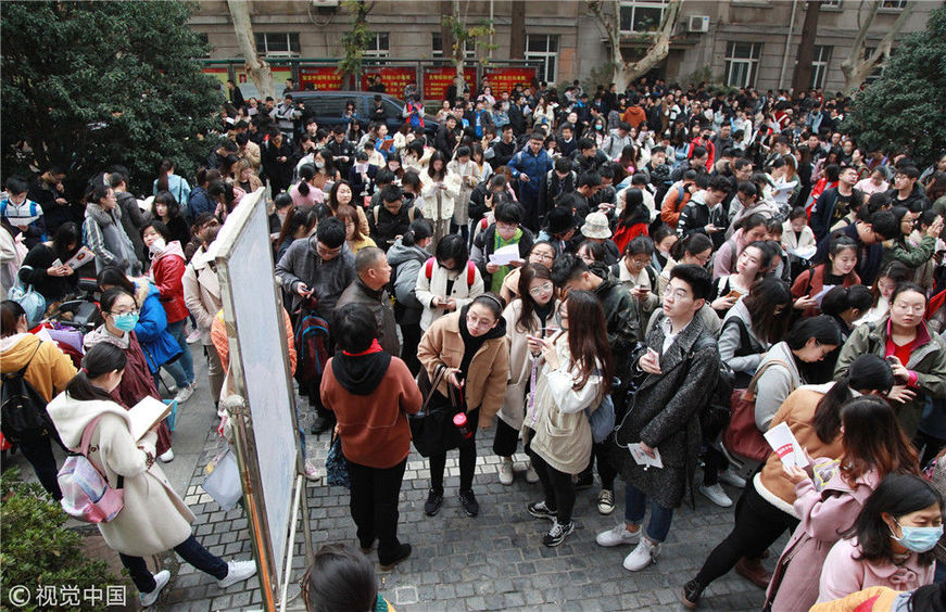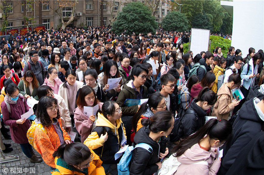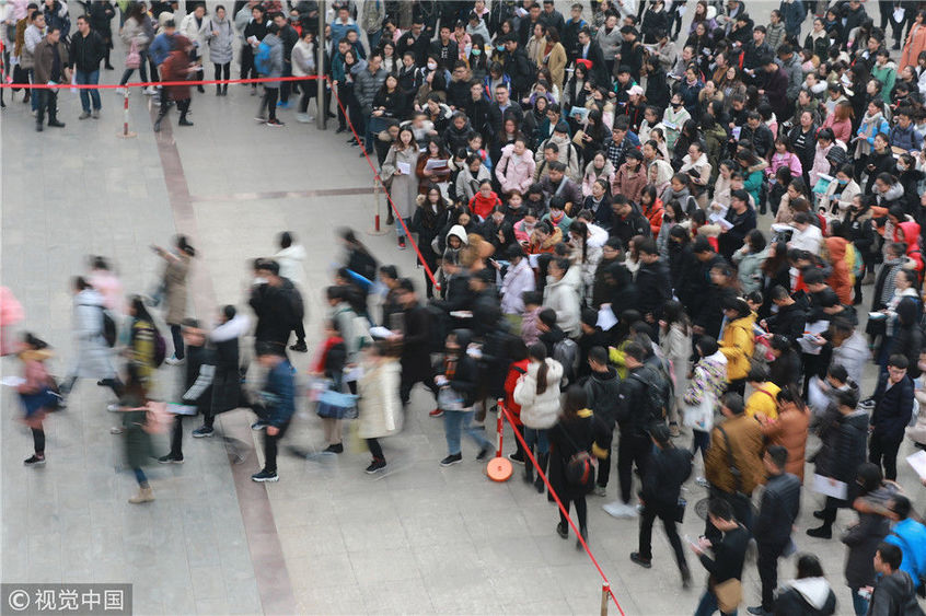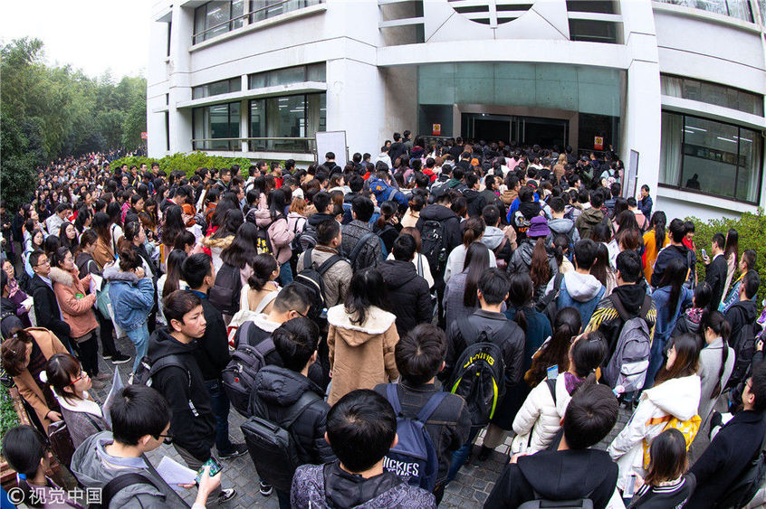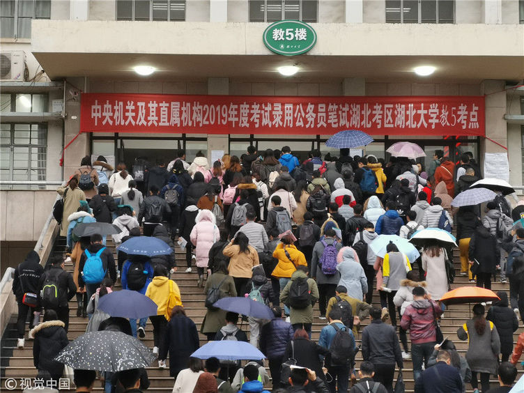 2018年12月2日,湖北武漢一公務(wù)員考點,密密麻麻的考生進(jìn)向考場。當(dāng)日,2019年度中央機關(guān)及其直屬機構(gòu)公務(wù)員招考筆試開考。楚林/視覺中國