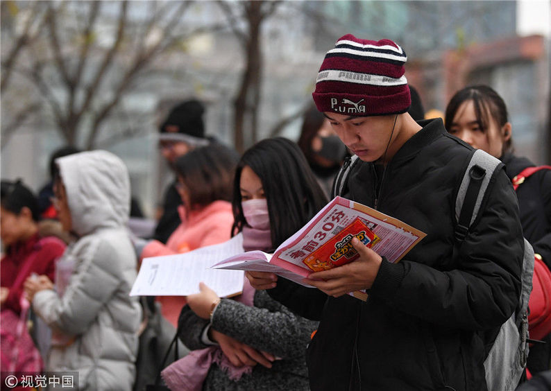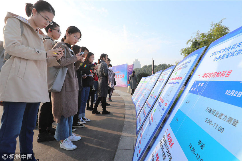 2018年12月2日,北京,參加2019年度中央機關(guān)及其直屬機構(gòu)公務(wù)員招考筆試的考生走入首都經(jīng)濟貿(mào)易大學(xué)考點準(zhǔn)備考試,步履匆匆。2019年度中央機關(guān)及其直屬機構(gòu)公務(wù)員招考筆試今日開考。本次國考計劃招錄1.45萬人,共有137.93萬人通過報名資格審查,平均競爭比達(dá)到95:1,為近5年來最高,最熱崗位的競爭超過4000:1。視覺中國