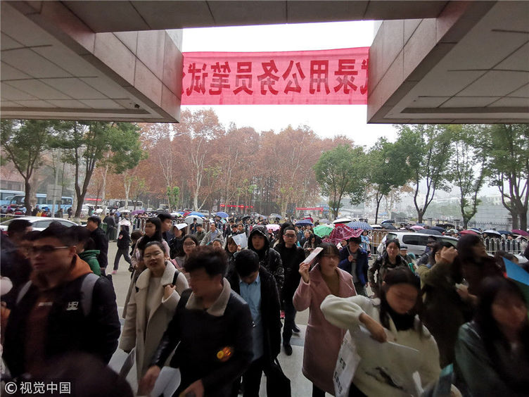 2018年12月2日,湖北武漢一公務(wù)員考點,密密麻麻的考生進向考場。當日,2019年度中央機關(guān)及其直屬機構(gòu)公務(wù)員招考筆試開考。楚林/視覺中國