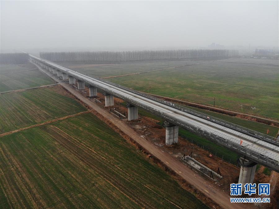 12月2日拍攝的魯南高鐵山東臨沂段(無人機拍攝)。