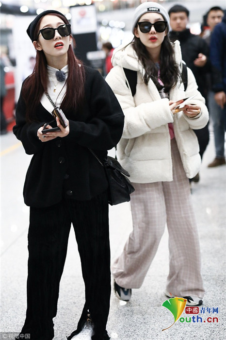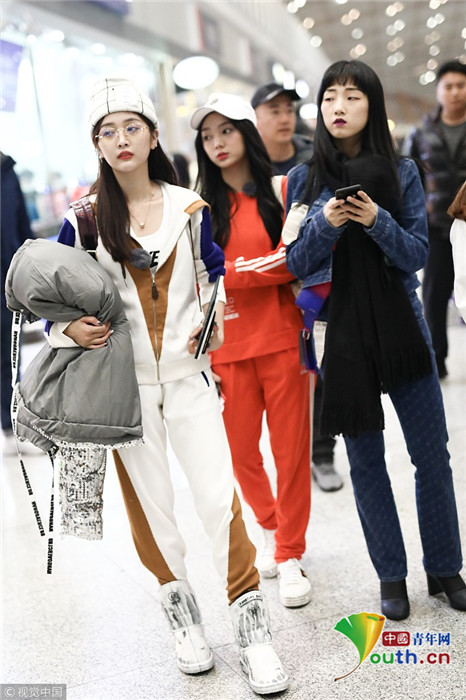 2018年12月3日,北京,“火箭少女101”全體成員現(xiàn)身機(jī)場前往國外錄制團(tuán)總綜。其中孟美岐戴著墨鏡,一身全黑運(yùn)動(dòng)裝扮,大步流星氣場超強(qiáng),楊蕓晴、yamy、楊超越等成員緊隨其后,大家還一起在機(jī)場玩起自拍,好不歡樂。