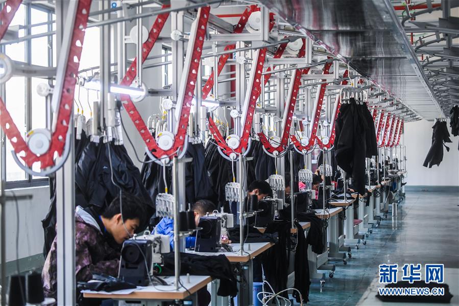 11月20日拍攝的位于烏鎮(zhèn)的嘉興恒美服飾有限公司現(xiàn)代化的成衣車間。 新華社記者 徐昱 攝