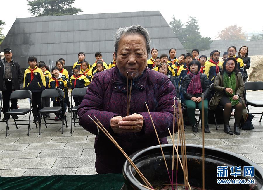 12月3日,南京大屠殺幸存者石秀英焚香祭奠被侵華日軍殺害的親人。 當(dāng)日,在第五個(gè)南京大屠殺死難者國家公祭日到來之際,南京大屠殺死難者遺屬家祭活動在侵華日軍南京大屠殺遇難同胞紀(jì)念館正式啟動。首批前來開展家祭活動的南京大屠殺幸存者余昌祥、石秀英老人分別率家屬在紀(jì)念館內(nèi)的死難者名單墻前獻(xiàn)花、敬香、跪拜,并誦讀家信,表達(dá)對親人的哀思。 新華社記者 孫參 攝