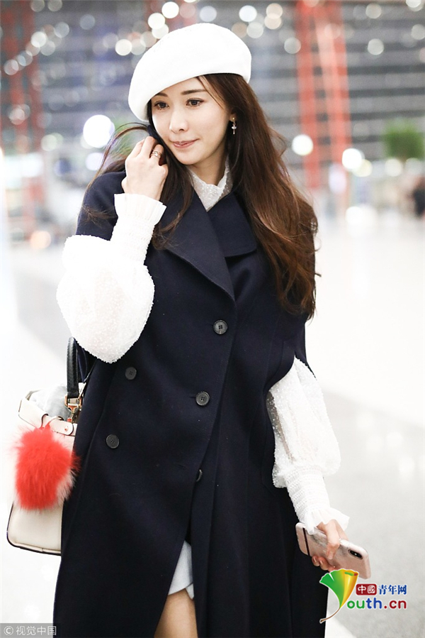 11月19日,北京,林志玲現身機場,林志玲穿黑色大衣配貝雷帽溫暖俏皮,揮手賣萌露修長美腿女神氣質爆棚。