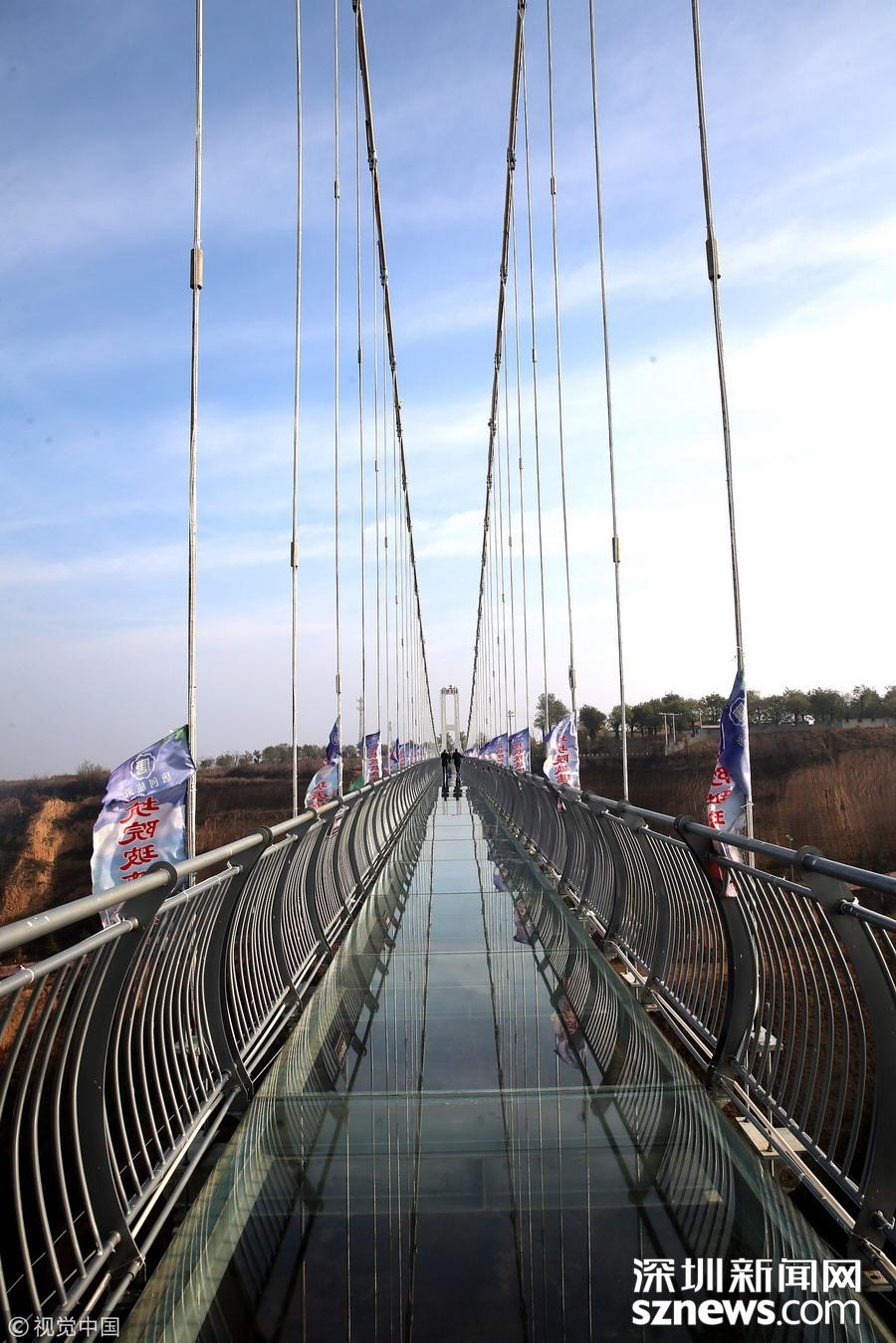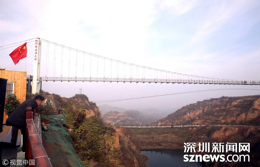 深圳新聞網(wǎng)訊 河南三門峽,位于陜州地坑院景區(qū)玻璃天橋。該項(xiàng)目橋梁總投資2600萬元,全長(zhǎng)368米,寬3米,高108米,是目前河南省內(nèi)最長(zhǎng)的玻璃天橋,還將陸續(xù)對(duì)外開放夜景效果、聲光效果以及更多的體驗(yàn)效果,逐步打造成整個(gè)豫西地區(qū)乃至全省的旅游打卡新地標(biāo)。