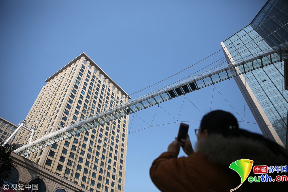2018年11月28日,石家莊市區(qū)內(nèi)的一座玻璃吊橋在網(wǎng)絡(luò)上走紅,游客們置身于透明的玻璃吊橋上,望著地面川流不息的車輛,伴隨玻璃破裂的特效聲,不禁膽戰(zhàn)心驚。這座玻璃吊橋位于石家莊南二環(huán)附近,橋體橫跨塔通大街,長(zhǎng)100米,高30米,。橋面由52塊特質(zhì)玻璃構(gòu)成,其中4塊為特效玻璃,游客腳踩上去就會(huì)發(fā)出玻璃破裂的聲音。