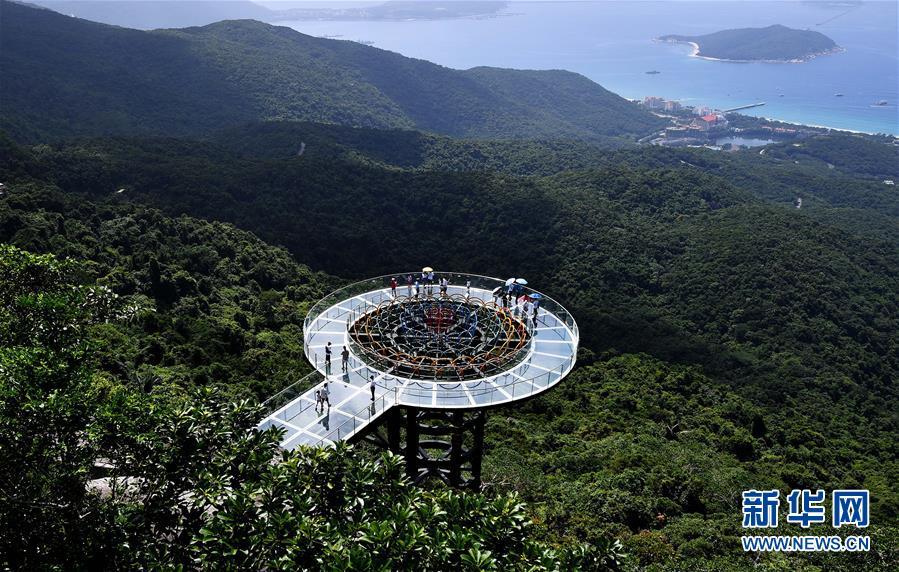 8月31日,游客在玻璃觀景平臺(tái)上參觀游覽。近日,位于海南省三亞市亞龍灣熱帶天堂森林公園的大佛石全海景玻璃棧道開始正式營業(yè)。凌空而建的玻璃棧道全長(zhǎng)400米,游客可將亞龍灣的美景盡收眼底。新華社記者郭程攝