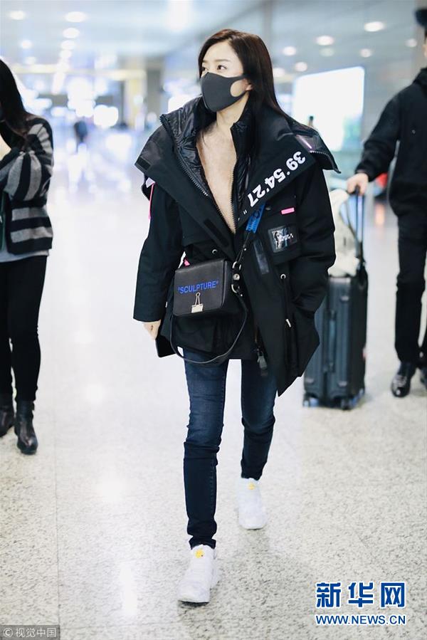 2018年12月3日,上海,秦嵐亮相機(jī)場(chǎng)。潮味棉服亮相機(jī)場(chǎng)變酷女孩,口罩遮面露甜笑心情靚。(圖片來(lái)源:視覺(jué)中國(guó))