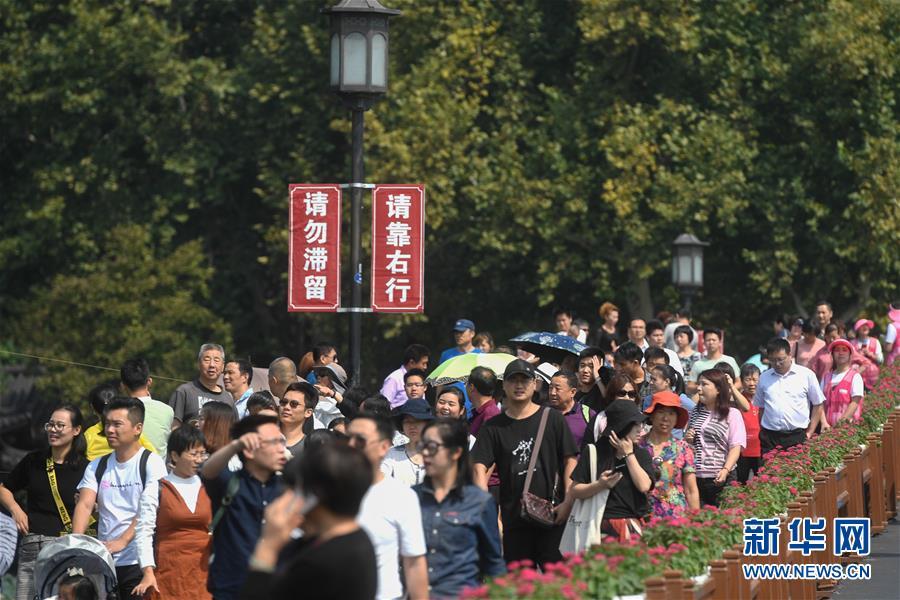 10月7日,杭州西湖風(fēng)景區(qū)的斷橋上游人絡(luò)繹不絕。為維持秩序,景區(qū)采取了雙向游客互相隔離的措施。當(dāng)日是國慶黃金周最后一天,眾多游客來到杭州西湖景區(qū)觀光游覽,熱度不減。據(jù)杭州市旅游委員會(huì)公布的數(shù)據(jù)顯示,從10月1日起截至10月7日12時(shí),國慶七天杭州市各景區(qū)(點(diǎn))接待游客總量達(dá)到1776.14萬人次,其中西湖風(fēng)景名勝區(qū)管委會(huì)所屬公園景點(diǎn)共接待游客452.2萬人次。新華社記者 黃宗治 攝