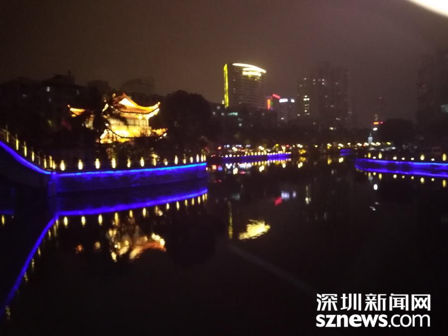 百里塘河穿市而過 ,燈光水光,相映成趣。 吳超攝