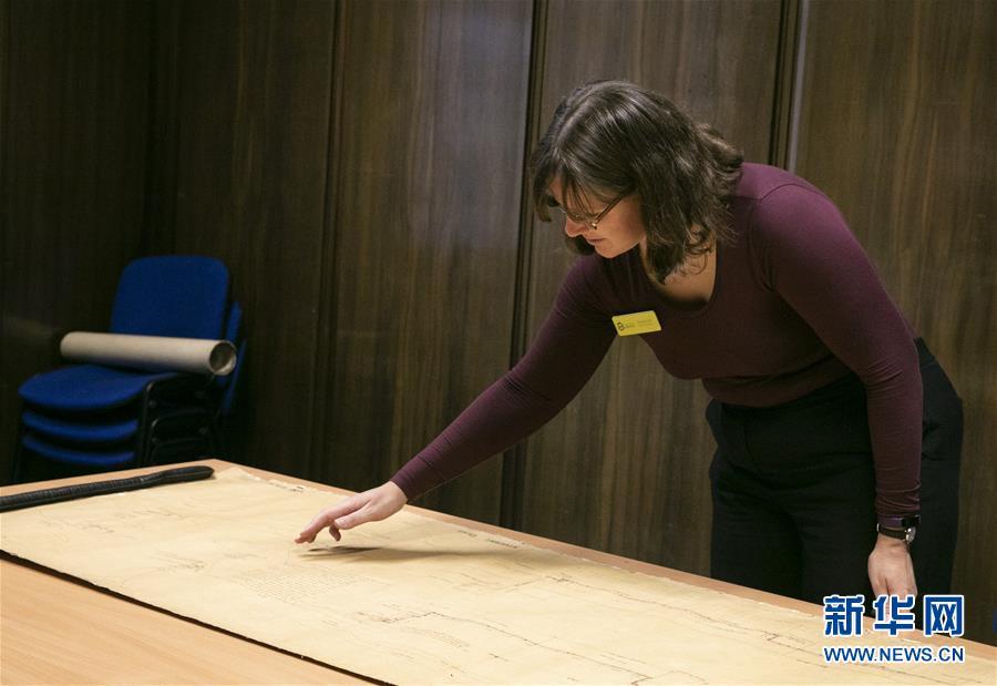 11月2日,在英國紐卡斯?fàn)柕奶┒鳌枡n案館,檔案管理員瑞秋·吉爾介紹致遠(yuǎn)艦設(shè)計圖紙。 新華社記者日前在紐卡斯?fàn)柼┒鳌枡n案館查找北洋海軍史料時發(fā)現(xiàn)一套七張、檔案名為“中國巡洋艦舵機(jī)設(shè)計圖”的原始圖紙。塵封百年,甲午海戰(zhàn)中抗擊日艦后沉沒的清北洋海軍致遠(yuǎn)艦部分原廠設(shè)計圖紙在其建造地——英國紐卡斯?fàn)柺械囊患覚n案館首次被發(fā)現(xiàn),為打撈那段悲壯的歷史提供了重要參考。 新華社記者 韓巖 攝