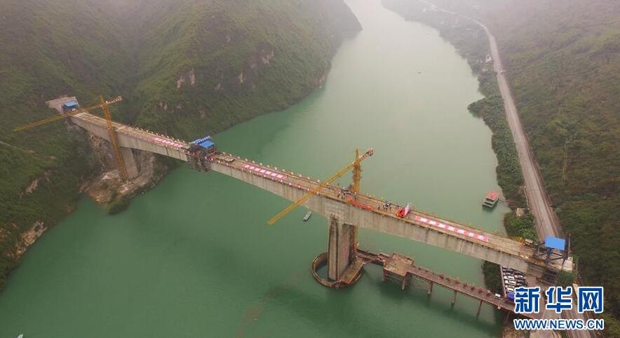 2018年5月30日,云南昭通,鸚哥大橋完成最后一段35米引橋現(xiàn)澆箱梁作業(yè),標志著“鸚哥溜索改橋”主體工程完工,進入最后階段的橋面鋪裝和防護欄施工,預計6月底建成通車。