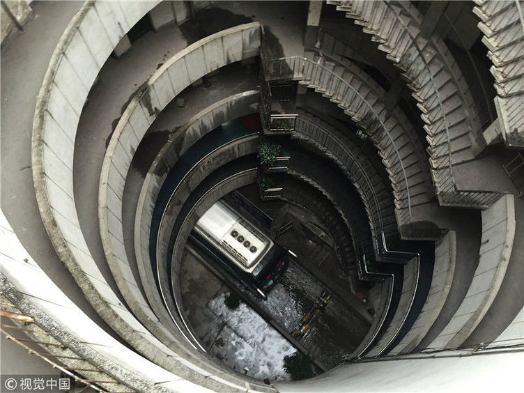 2018年12月6日,重慶江北紅旗河溝汽車站內(nèi),有一棟獨特的八層圓環(huán)狀建筑,底層每天有不少進(jìn)出站的客車通行。