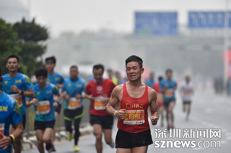 2018年12月16日,深圳國際馬拉松位于后海的折返點(diǎn),一家三口都參與了本次比賽,正向目標(biāo)沖刺。