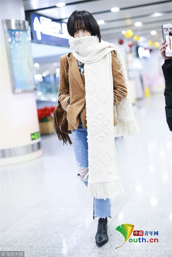2018年12月16日,宋茜從上海機場飛往北京機場。她身穿短款薄外套,搭配破洞牛仔褲,要風度不要溫度,一路低頭前行悶悶不樂似遇愁心事,到了北京之后她又裹起了厚圍巾,但依舊悶悶不樂。