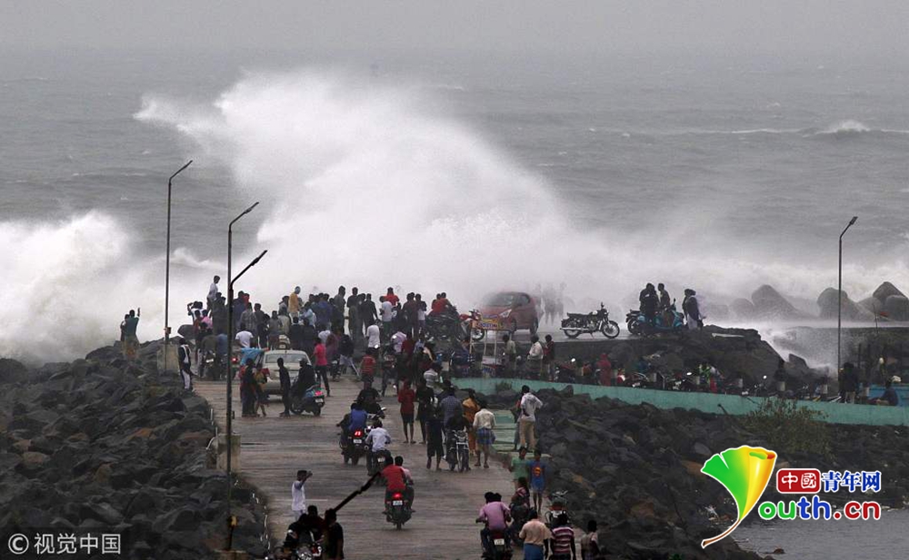當?shù)貢r間2018年12月16日,印度欽奈,颶風“佩太”正向印度東海岸逼近,引發(fā)狂風巨浪。