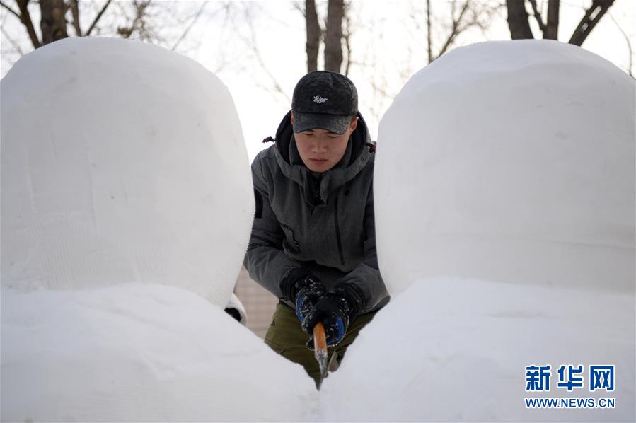 國內(nèi)最大的雪雕盛會太陽島雪博會正在緊鑼密鼓建設(shè)中,雪雕師正在精雕細(xì)刻打磨中。