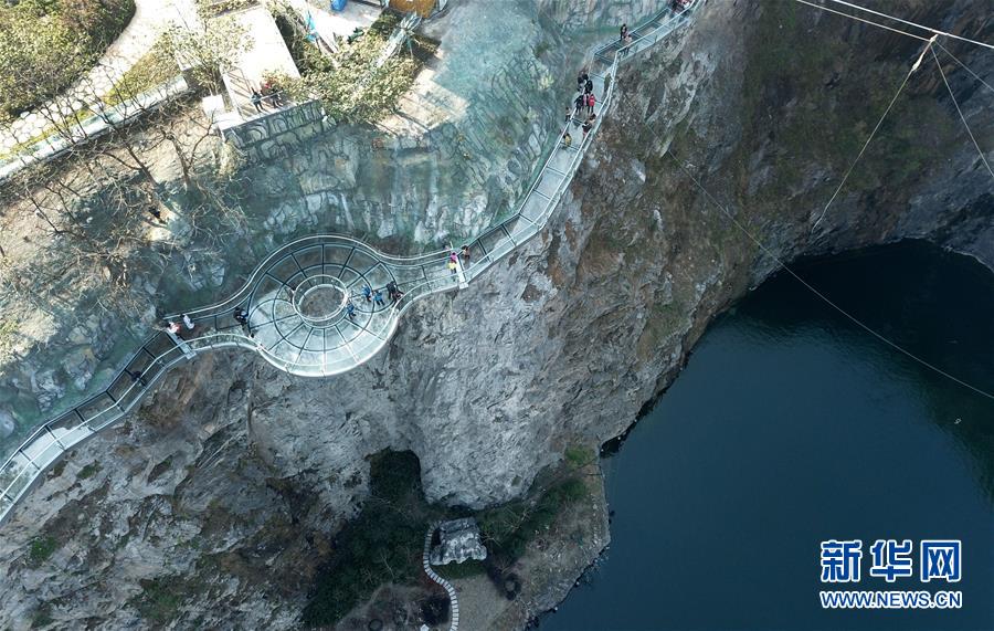 12月18日,游客在樂園內的玻璃棧道上行走(無人機拍攝)。 當日,“世茂精靈之城主題樂園奇幻親子嘉年華開幕暨上海公益基地揭牌儀式”在位于上海佘山國家旅游度假區(qū)的世茂精靈之城主題樂園一期(“深坑秘境”)正式啟動?!吧羁用鼐场迸徤虾Y苌绞烂揠H酒店,除了擁有俯瞰“深坑”的玻璃棧道外,還包括360度崖壁大擺錘、精靈樹屋、沙漠考古、夢幻水域和蟲蟲世界等項目,帶來親子游玩新體驗。 新華社記者 方喆 攝
