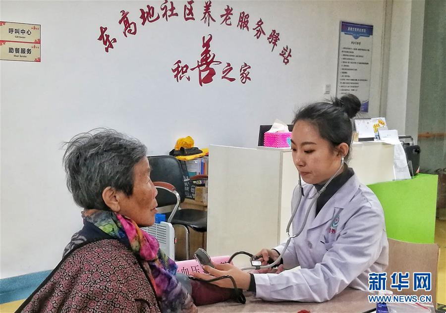 12月18日,豐臺區(qū)東高地街道養(yǎng)老服務驛站聘請的醫(yī)務人員為社區(qū)老人進行免費檢查。 新華社記者 李欣 攝