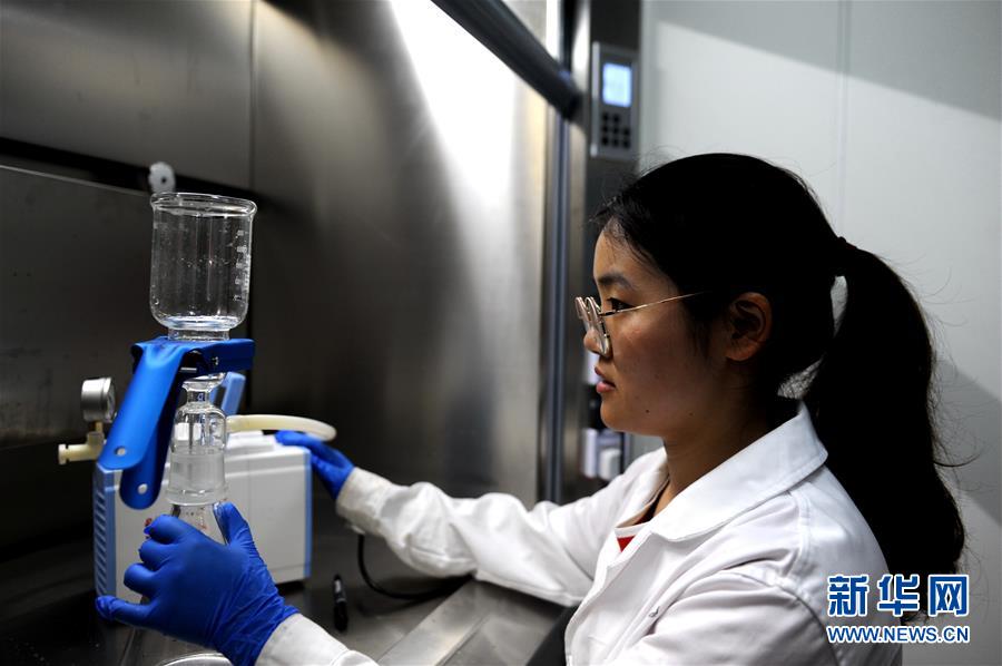 12月18日,來自上海海洋大學的女隊員劉艷在“沈括”號實驗室工作。 新華社記者 張建松 攝