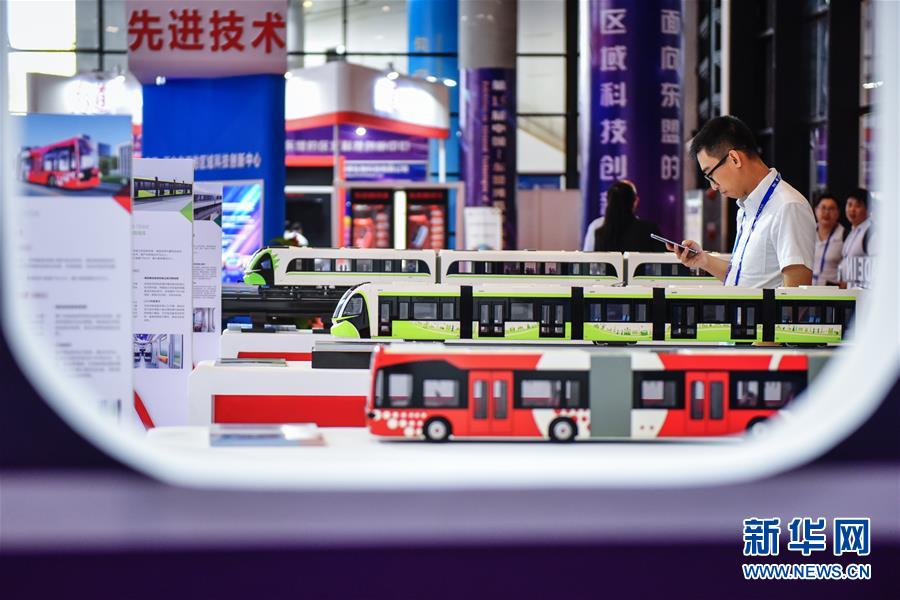在廣西南寧國際會展中心展出的中車集團(tuán)的新型公共交通車輛模型(9月13日攝)。