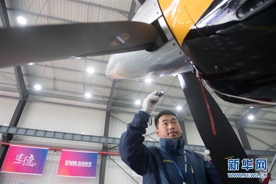 12月20日,在建德市航空小鎮(zhèn),工作人員對一架大棕熊100系列飛機進行日常維護。 當日,浙江省建德市航空小鎮(zhèn)通航制造板塊首架飛機下線交付。此次下線交付的大棕熊100系列Ⅱ飛機由美國Quest飛機制造公司出品,有望在通用航空領(lǐng)域發(fā)揮作用。建德市自2016年開始航空小鎮(zhèn)創(chuàng)建,2017年被列入全國第二批特色小鎮(zhèn)名單。 新華社記者翁忻旸攝