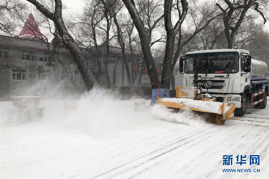 12月21日,清雪車輛在哈爾濱城區(qū)一條道路進(jìn)行清雪作業(yè)。當(dāng)日,“冰城”哈爾濱迎來降雪天氣,整個(gè)城市變得銀裝素裹。新華社記者曹霽陽(yáng)攝