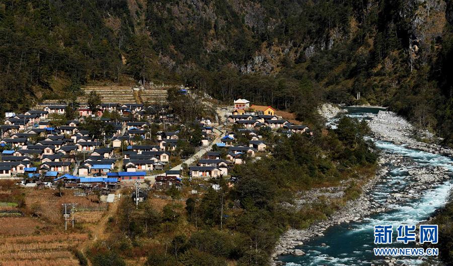 位于獨龍江畔的獨龍江鄉(xiāng)迪政當村的集中安居房一景(2016年11月23日攝)。 新華社記者 藺以光 攝