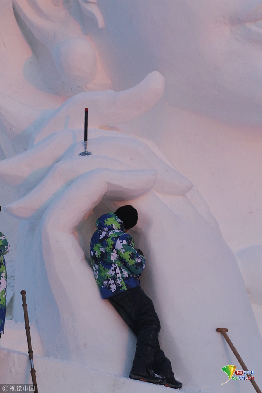 黑龍江省哈爾濱市,國內(nèi)最大的雪雕盛會(huì)太陽島雪博會(huì)正在緊鑼密鼓建設(shè)中,部分雪雕雛形已現(xiàn)。