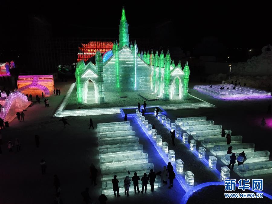 當(dāng)日,第二十屆哈爾濱冰雪大世界開(kāi)園迎客,向來(lái)自全世界的游客展現(xiàn)“流光溢彩”的冰雪奇觀(guān)。第二十屆哈爾濱冰雪大世界總占地面積60萬(wàn)平方米,用冰量11萬(wàn)立方米,用雪量12萬(wàn)立方米。上百個(gè)景觀(guān)群、30余處互動(dòng)娛樂(lè)項(xiàng)目及數(shù)百場(chǎng)精彩活動(dòng),構(gòu)成了一場(chǎng)冰雪盛宴。 新華社記者王松攝