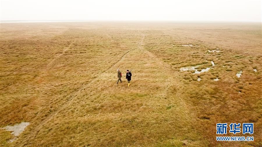 12月22日,王三益(右)和生態(tài)保護(hù)協(xié)會(huì)成員江軍在菜子湖濕地進(jìn)行越冬候鳥巡護(hù)(無(wú)人機(jī)拍攝)。每年10月開始,候鳥遷徙至菜子湖,次年3月飛回北方,期間王三益會(huì)和協(xié)會(huì)成員開展越冬候鳥巡護(hù)以及清理濕地灘涂垃圾。