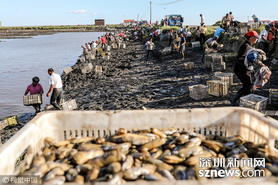 深圳新聞網(wǎng)訊 2018年9月8日,遼寧丹東,早上5點(diǎn),挖蟶人紛紛下到各個池子,要在海水海泥里艱辛勞作10小時,直至下午3點(diǎn)集體上岸,等待買家的運(yùn)輸車隊(duì)運(yùn)走他們的勞動成果。9月初,遼寧沿海養(yǎng)殖區(qū)進(jìn)入養(yǎng)殖海鮮的收獲季。在東港,常常出現(xiàn)數(shù)百人乃至上千人集結(jié)在池子里挖蟶子(這里特指縊蟶,即東港當(dāng)?shù)厝怂f的小人仙。下同)的壯觀景象。在養(yǎng)殖海鮮的收獲季,成群的海鷗趁機(jī)“助陣“,人與大自然和諧共處的畫面令人嘆為觀止。