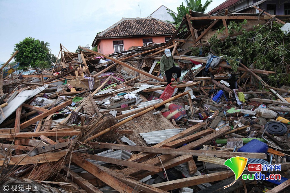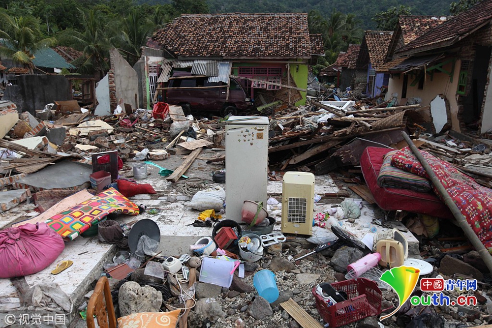 當?shù)貢r間2018年12月24日,印度尼西亞萬丹省卡里塔,現(xiàn)場遍地廢墟,一片狼藉。22日夜間的一次海嘯襲擊了印度尼西亞爪哇島西海岸。印尼國家災難機構24日表示,印尼火山引發(fā)的海嘯造成的死亡人數(shù)已經(jīng)上升至373人,1000多人受傷。