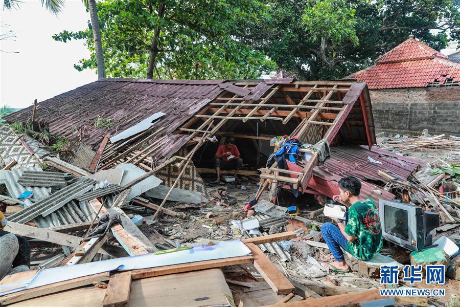 這是12月24日在印尼萬丹省拍攝的被海嘯沖毀的房屋。 印度尼西亞抗災署發(fā)言人24日說,印尼西部巽他海峽海嘯死亡人數(shù)已經(jīng)上升至373人。 新華社記者 張可任 攝