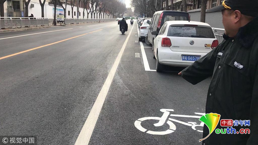 “你看看,自行車道被新劃的停車位占住了,路邊沒有停車還好,一旦有汽車,我騎車只能走快車道,基本沒有騎車的位置了。”市民張先生說,“這里最多能容下一輛電動車通行,不走機動車道你說走哪?”