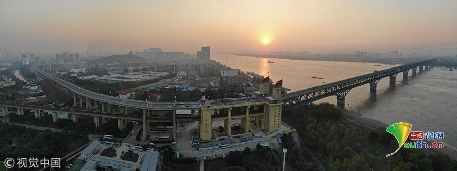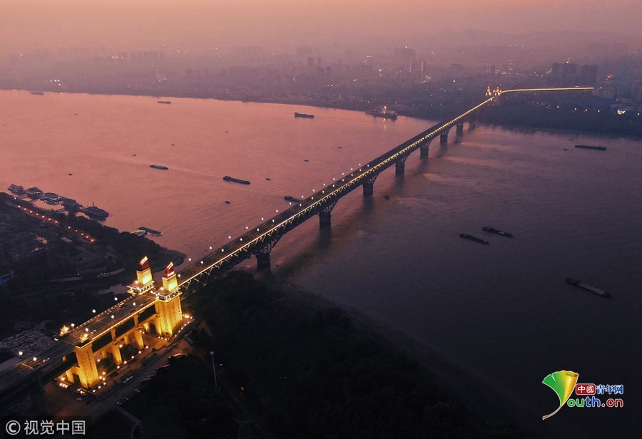 2018年12月13日,江蘇南京,“一橋飛架南北,天塹變通途?!弊鳛槲覈谝蛔孕性O計和建造的雙層鐵路、公路兩用橋,南京長江大橋在我國橋梁史上的重要地位不言而喻。從1968年建成后的48年間,它就如同一條巨龍,始終在長江上默默守護著人來車往。南京長江大橋上層是公路橋,下層為雙軌復線鐵路橋,連接津浦鐵路與滬寧鐵路干線,是我國南北交通要津和命脈。近年來,由于南京長江大橋公路橋的實際通行荷載遠超原先設計標準,不僅橋面上擁堵?,F(xiàn),橋梁本身的種種“病害”也日益加深。圖為2018年12月13日,夜幕降臨,南京長江大橋歸位后的玉蘭花燈重新點亮。大橋玉蘭花燈柱共有299根,每根燈柱上有5盞玉蘭花燈,1大4小,一共1495盞。方東旭/視覺中國