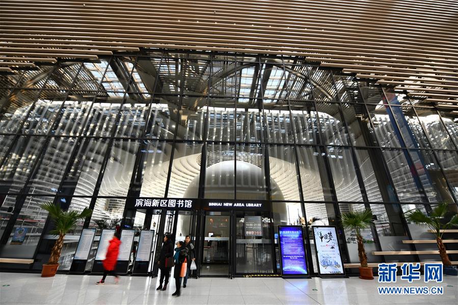 這是12月27日拍攝的天津?yàn)I海新區(qū)圖書(shū)館入口。 濱海新區(qū)圖書(shū)館位于天津?yàn)I海文化中心,2017年10月1日正式開(kāi)館,設(shè)計(jì)立意為“濱海之眼”和“書(shū)山有路勤為徑”。圖書(shū)館現(xiàn)有藏書(shū)60多萬(wàn)冊(cè),一年多來(lái)接待讀者約280萬(wàn)人次,已成為濱海新區(qū)的文化“新地標(biāo)”。 新華社記者李然攝
